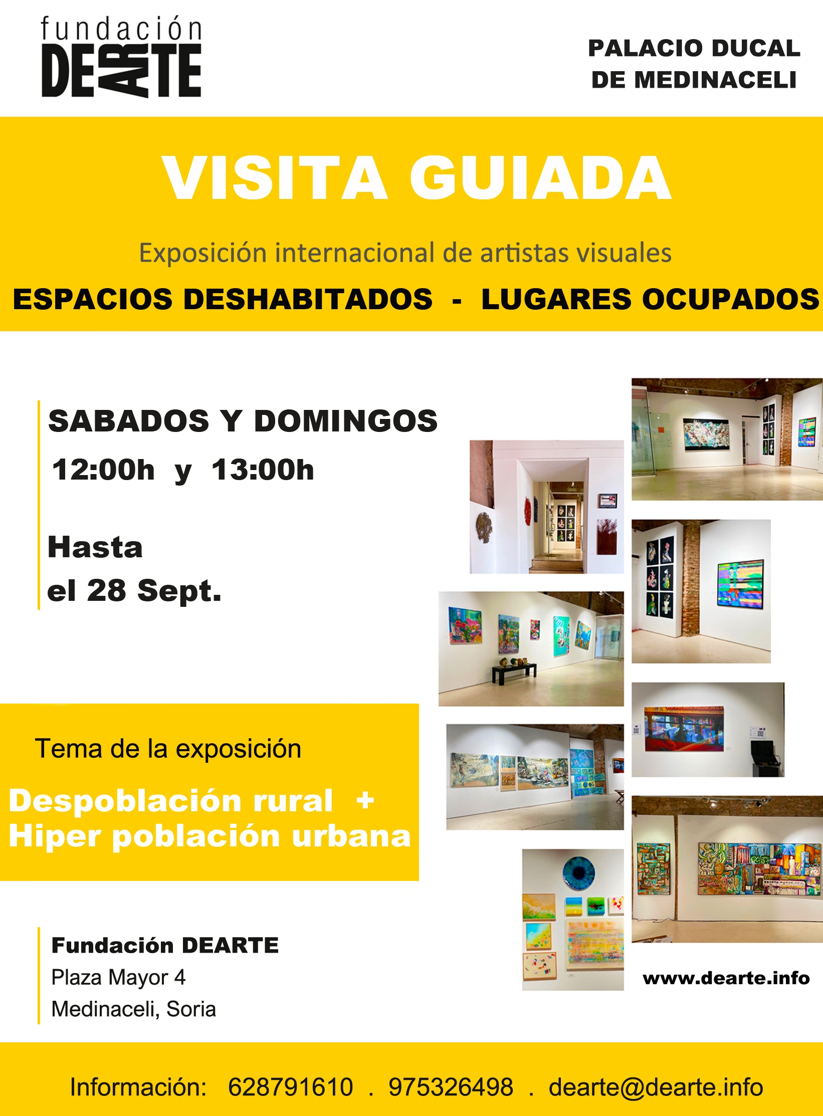 La Fundación DEARTE Contemporáneo arranca hoy la primera de las visitas guiadas que se realizarán habla exposición ‘Espacios Deshabitados – Lugares Ocupados’. La comisaria de Arte de la exposición, Judith Cuba, será la encargada de realizar el recorrido con los asistentes, explicando las obras que componen esta muestra que versa sobre despoblación rural e hiper población. La Fundación presidida por Miquel Tugores da así un paso más en su objetivo de dinamizar culturalmente Medinaceli y de remover conciencias e ideas a través de la cultura en Soria.
